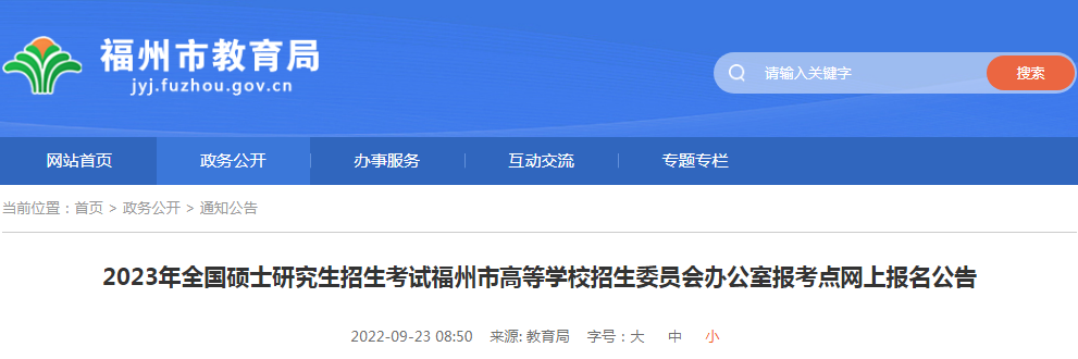 考研頻道從福州市教育局了解到,2023年全國碩士研究生招生考試福建福州市高等學(xué)校招生委員會(huì)辦公室報(bào)考點(diǎn)網(wǎng)上報(bào)名公告已發(fā)布,詳情如下: