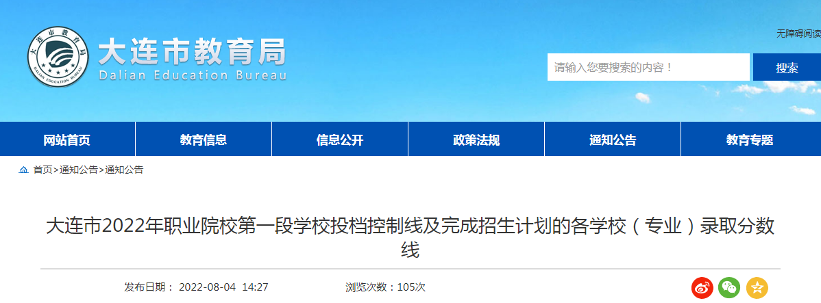 從大連市教育局了解到,遼寧大連2022職業(yè)院校第一段學(xué)校投檔控制線及完成招生計(jì)劃的各學(xué)校(專業(yè))錄取分?jǐn)?shù)線已發(fā)布,詳細(xì)內(nèi)容如下: