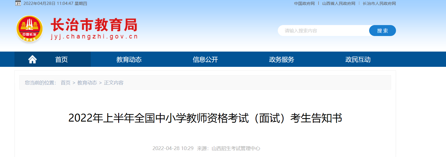 從長治市教育局獲悉,2022年上半年山西長治中小學(xué)教師資格考試(面試)考生告知書已公布,請相關(guān)人員仔細閱讀,具體詳情如下: