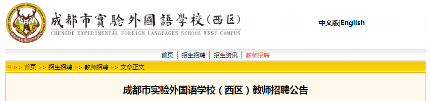 1.在成都市實(shí)驗(yàn)外國(guó)語(yǔ)學(xué)校(西區(qū))校園網(wǎng)首頁(yè)“招生招聘”欄中下載《教師應(yīng)聘