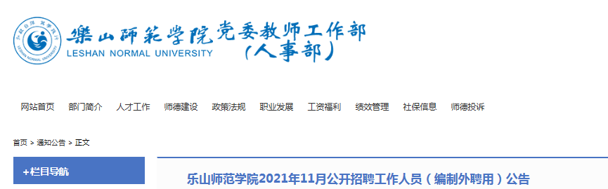 2021年11月四川樂山師范學(xué)院招聘(編制外聘用)52人,報名時間為2021年10月25日09:00至2021年10月29日18:00止,現(xiàn)將招聘公告原文發(fā)布如下: