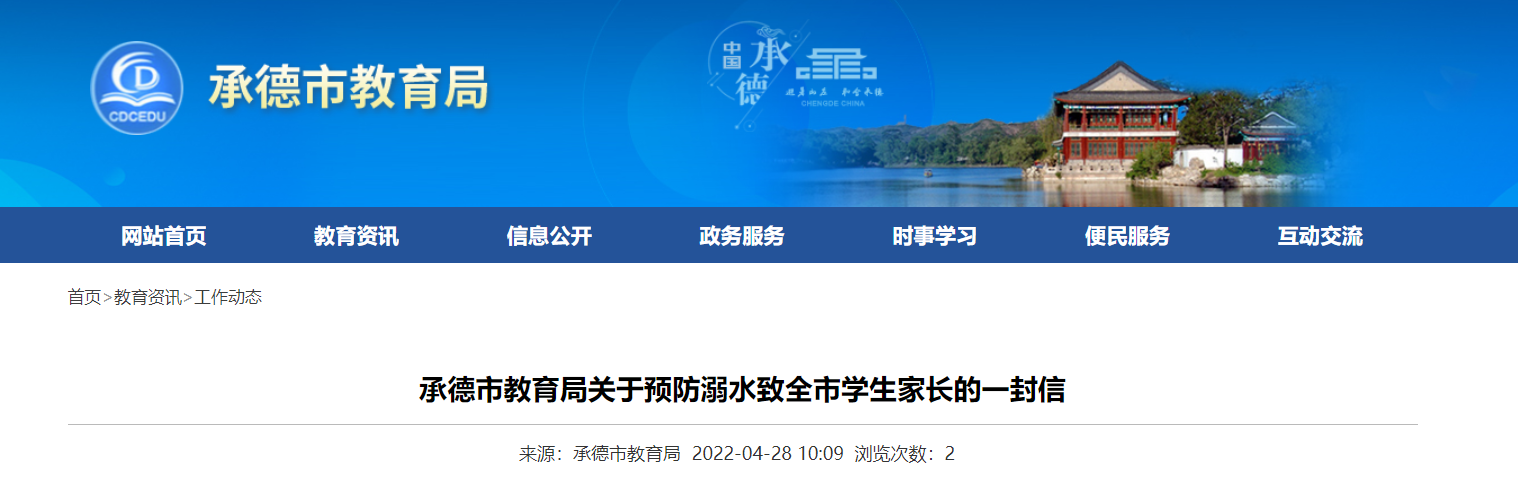 河南省承德市教育局關(guān)于預(yù)防溺水致全市學(xué)生家長(zhǎng)的一封信已發(fā)布。為您整理了以下內(nèi)容,供您參考。