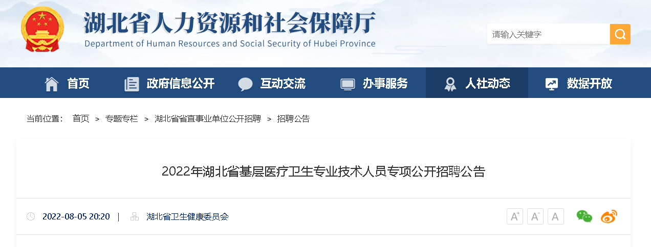 2022湖北省基層醫(yī)療衛(wèi)生專業(yè)技術(shù)人員專項招聘2505人,報名時間:2022年8月9日9:00至8月15日17:00,現(xiàn)將招聘公告原文發(fā)布如下: