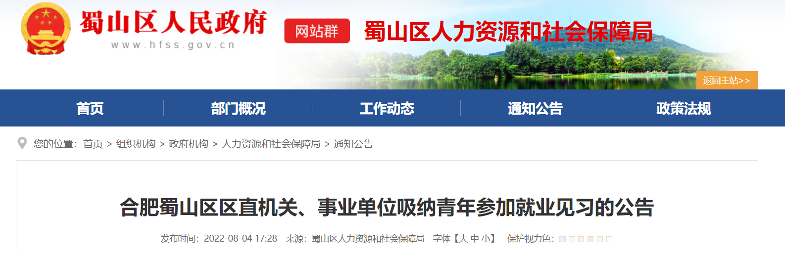 2022安徽省合肥蜀山區(qū)區(qū)直機(jī)關(guān)事業(yè)單位吸納青年參加就業(yè)見習(xí)公告【28人】已發(fā)布。報(bào)名時(shí)間:2022年8月8日9:00至12日17:00,逾期不再補(bǔ)報(bào)?,F(xiàn)將招聘公告原文發(fā)布如下: