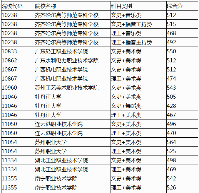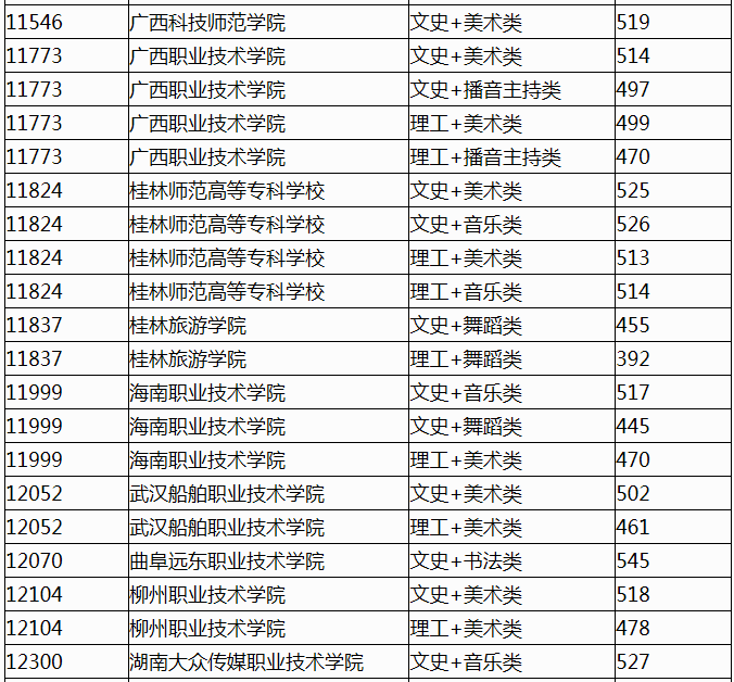 藝術(shù)高考頻道從廣西招生考試院了解到,2022年廣西普通高校招生高職高專提前批藝術(shù)類最低投檔分?jǐn)?shù)線已公布,詳情如下:
