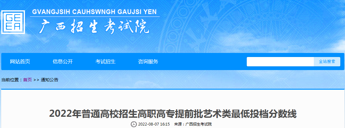 點(diǎn)擊查看:2022年廣西普通高校招生高職高專提前批藝術(shù)類最低投檔分?jǐn)?shù)線