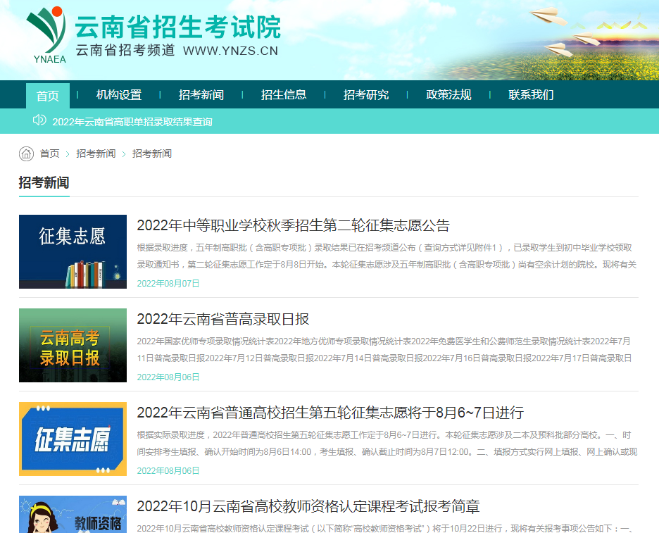 從云南省招生考試院-云南省招考頻道發(fā)布的《2022年10月云南高校教師資格認(rèn)定課程考試報(bào)考簡(jiǎn)章》得知,2022年10月云南高校教師資格考試成績(jī)查詢時(shí)間及入口已公布,考試結(jié)束后一個(gè)月左右可查分,具體詳情如下: