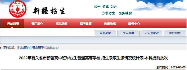 從新疆招生網(wǎng)了解到,2022年有關(guān)省市新疆高中班畢業(yè)生普通高等學(xué)校招生錄取生源情況統(tǒng)計(jì)表-本科提前批次已發(fā)布,詳細(xì)內(nèi)容如下: