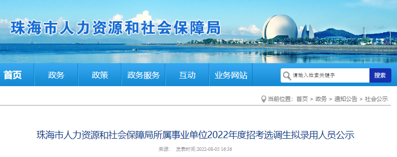 2022年廣東珠海市人力資源和社會(huì)保障局所屬事業(yè)單位招考選調(diào)生擬錄用人員公示已公布,為了方便廣大考生的查閱,下面為您詳細(xì)介紹一下本次擬錄用人員公示的具體事宜,希望廣大考生及時(shí)關(guān)注,如有相關(guān)疑問,請(qǐng)關(guān)注為您實(shí)時(shí)做出的更新。