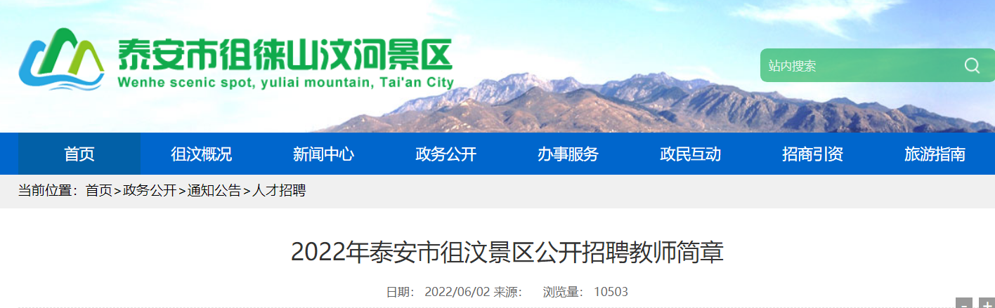 2022山東泰安市徂汶景區(qū)招聘教師46人,報(bào)名時(shí)間:2022年6月14日9:00-6月16日16:00,現(xiàn)將招聘公告原文發(fā)布如下: