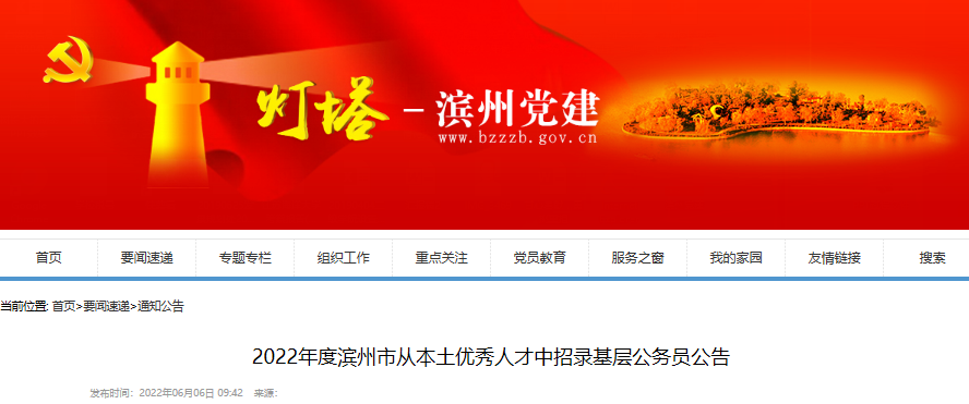 2022年山東濱州市從本土優(yōu)秀人才中招錄基層公務(wù)員公告已公布,為了方便廣大考生的查閱,下面為您詳細(xì)介紹一下本次招錄基層公務(wù)員的具體事宜,希望廣大考生及時關(guān)注,如有相關(guān)疑問,請關(guān)注公務(wù)員頻道為您實時做出的更新。