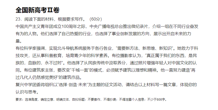 要求:選準(zhǔn)角度,確定立意,明確文體,自擬標(biāo)題;不要套作,不得抄襲;不得泄露個(gè)人信息;不少于800字。