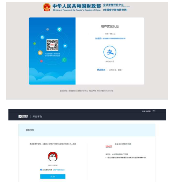 注冊成功后需要進(jìn)行本人支付寶實(shí)名認(rèn)證與微信綁定,用戶按提示打開支付寶和微信掃碼即可完成實(shí)名認(rèn)證與微信綁定。如下圖所示。