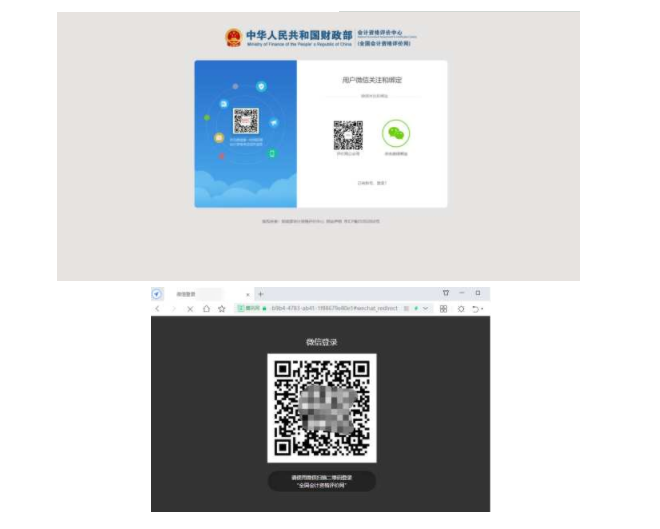 一、考生通過點(diǎn)擊全國會計(jì)資格評價網(wǎng)(http://kzp.mof.gov.cn/)右上方的登錄鏈接,進(jìn)入登錄頁面,根據(jù)提示輸入用戶名、密碼以及驗(yàn)證碼,點(diǎn)擊"登錄"按鈕進(jìn)入系統(tǒng)首頁。也可使用本人微信掃碼登錄,如下圖所示。