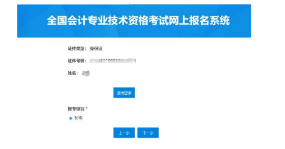 選擇報考級別后點(diǎn)擊"下一步"填寫報考信息。如下圖所示。