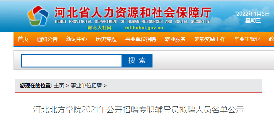 根據(jù)《河北省事業(yè)單位公開招聘工作人員暫行辦法》和《河北北方學(xué)院2021年公開招聘專職輔導(dǎo)員公告》,經(jīng)報(bào)名資格審查、考試、考察、體檢等程序,確定以下4人為擬聘人員,現(xiàn)予以公示: