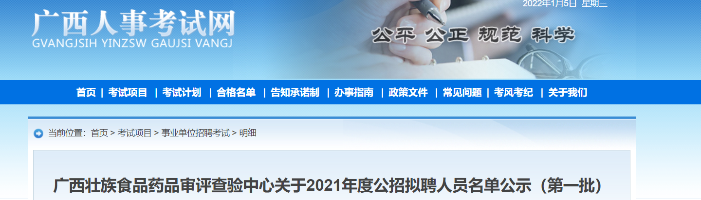 關于2021年廣西壯族食品藥品審評查驗中心公招擬聘人員名單公示【第一批】已發(fā)布。我單位于2021年8月11日發(fā)布《廣西壯族自治區(qū)食品藥品審評查驗中心2021年度公開招聘工作人員公告》,現(xiàn)根據(jù)公招程序,對第一批19名擬聘人員名單予以公示,具體如下。為您整理了以下內(nèi)容,供您參考。