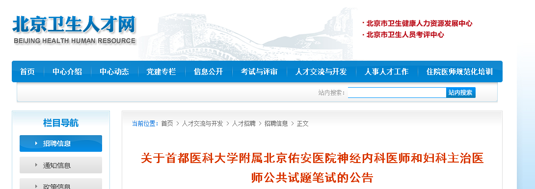 2022首都醫(yī)科大學(xué)附屬北京佑安醫(yī)院神經(jīng)內(nèi)科醫(yī)師和婦科主治醫(yī)師公共試題筆試的公告已出,詳細(xì)請(qǐng)見(jiàn)公告內(nèi),現(xiàn)將招聘公告原文發(fā)布如下: