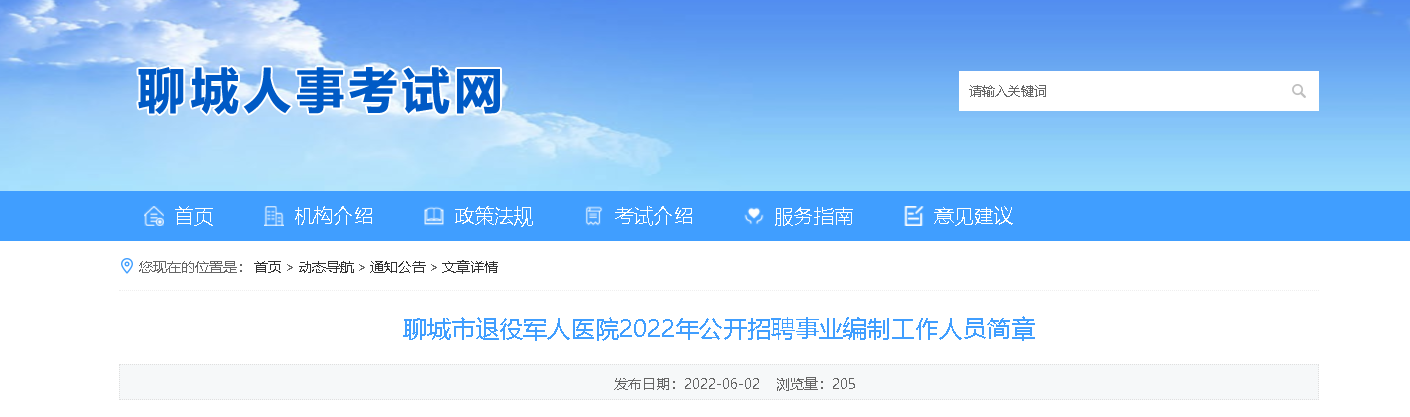 2022山東聊城市退役軍人醫(yī)院招聘事業(yè)編制人員5人,報(bào)名時(shí)間:2022年6月15日-2022年6月21日,現(xiàn)將招聘簡(jiǎn)章原文發(fā)布如下: