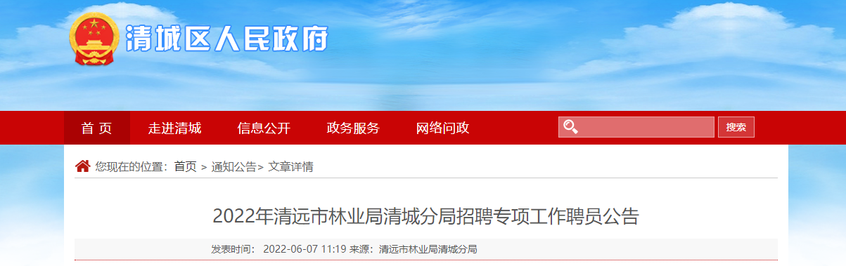 2022廣東省清遠(yuǎn)市林業(yè)局清城分局招聘專項(xiàng)工作聘員公告已發(fā)布。報(bào)名時(shí)間:2022年6月9日-6月10日上午9:00至11:30時(shí),下午14:30至17:00時(shí),共兩天?,F(xiàn)將招聘公告原文發(fā)布如下: