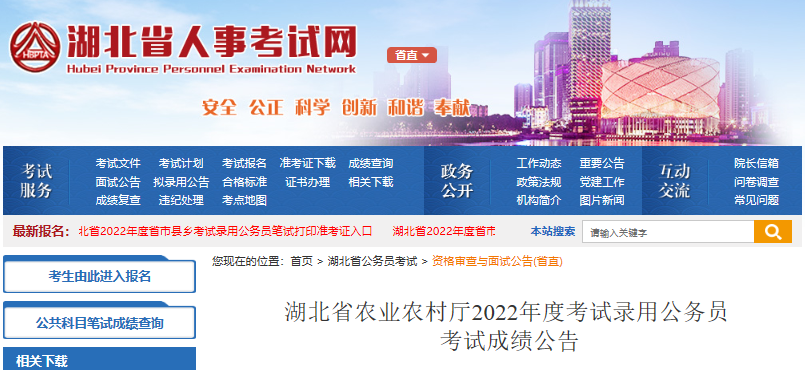 2022年湖北省農(nóng)業(yè)農(nóng)村廳考試錄用公務(wù)員考試成績公告已公布,為了方便廣大考生的查閱,下面為您詳細(xì)介紹一下本次公務(wù)員考試成績的具體事宜,希望廣大考生及時(shí)關(guān)注,如有相關(guān)疑問,請關(guān)注公務(wù)員考試頻道為您實(shí)時(shí)做出的更新。