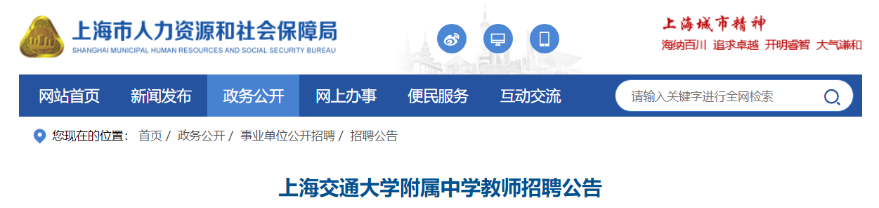 2022上海交通大學(xué)附屬中學(xué)教師招聘公告已發(fā)布,報(bào)名時(shí)間:即日起至2022年3月31日?,F(xiàn)將招聘公告原文發(fā)布如下: