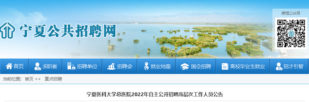 2022寧夏醫(yī)科大學(xué)總醫(yī)院招聘高層次人員42人,報(bào)名時(shí)間:一年內(nèi)有效,現(xiàn)將招聘公告原文發(fā)布如下: