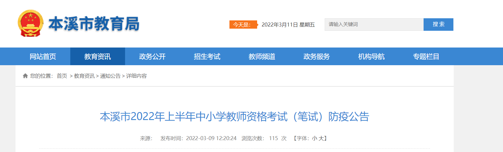 從本溪市教育局獲悉,2022年上半年遼寧本溪中小學教師資格考試(筆試)防疫公告已公布,請相關人員仔細閱讀,具體詳情如下:
