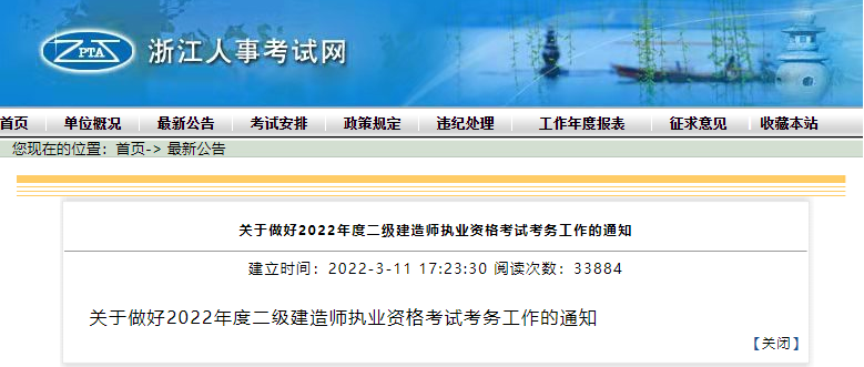 #】《2022年浙江二級建造師執(zhí)業(yè)資格考試工作通知》現(xiàn)已發(fā)布,2022年浙江二級建造師報名時間:3月22日-31日,考試時間:6月11日-12日,小編現(xiàn)將報考信息發(fā)布如下: