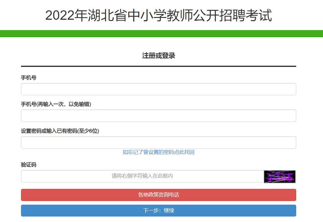 4.考生登錄報(bào)名系統(tǒng)如果密碼遺忘怎么辦?答:考生可登陸2022年湖北省中小學(xué)教師公開招聘考試報(bào)名平臺(tái),在報(bào)名系統(tǒng)首頁找到“找回密碼”功能,將通過手機(jī)短信的方式找回自己的密碼。