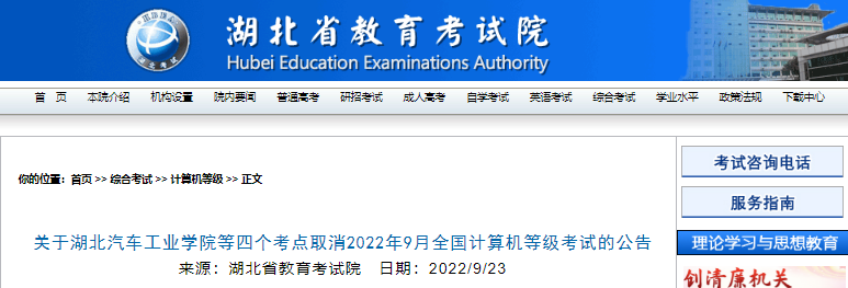 2022年9月湖北汽車工業(yè)學(xué)院等四個考點(diǎn)全國計算機(jī)等級考試取消公告已公布,為了方便廣大考生的查閱,下面為您詳細(xì)介紹一下本次計算機(jī)等級考試取消的具體事宜,希望廣大考生及時關(guān)注,如有相關(guān)疑問,請關(guān)注為您實(shí)時做出的更新。