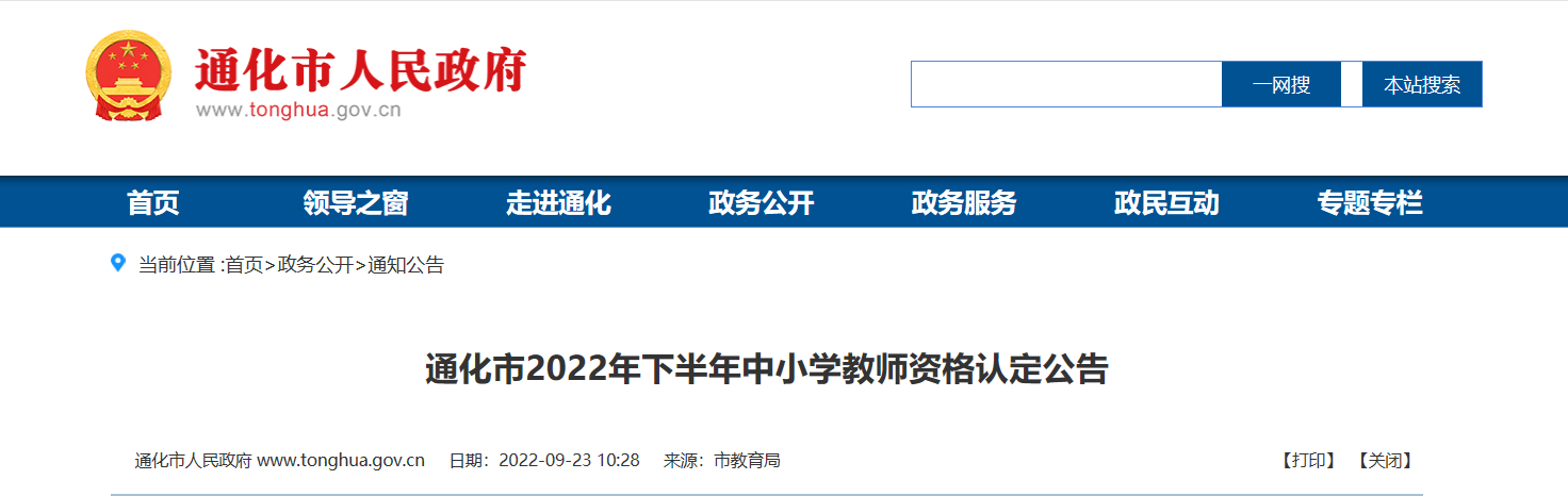 從通化市人民政府獲悉,2022年下半年吉林通化中小學(xué)教師資格認(rèn)定公告 已公布,請相關(guān)人員仔細(xì)閱讀,具體詳情如下: