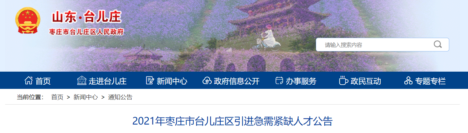 2021山東省棗莊市臺(tái)兒莊區(qū)引進(jìn)急需緊缺人才公告【15人】已發(fā)布。報(bào)名時(shí)間:2021年10月26日09:00-2021年10月28日16:00。為您整理了招聘條件和報(bào)名流程,供您參考。