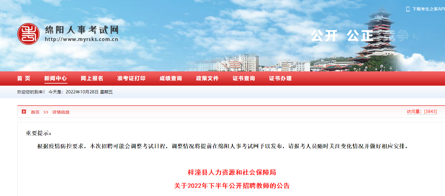 原文標(biāo)題:梓潼縣人力資源和社會(huì)保障局關(guān)于2022年下半年公開招聘教師的公告