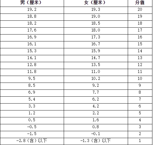 注:坐位體前屈以厘米為單位計錄測試成績,精確到一位小數(shù)。