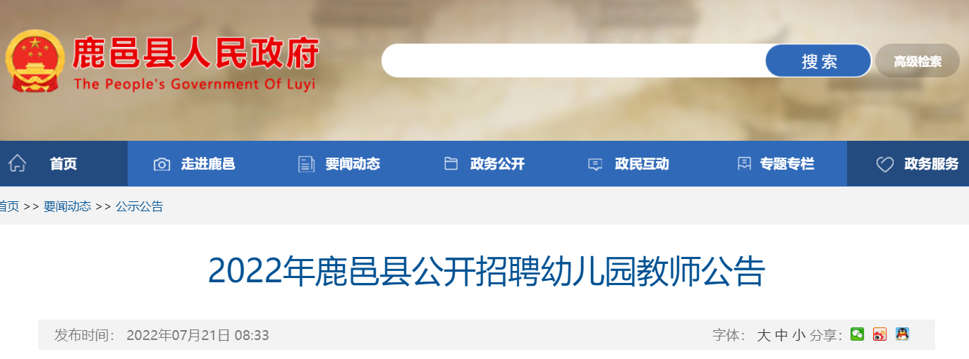 本次招聘方案發(fā)布在鹿邑縣政府網(wǎng)站(網(wǎng)址:http://www.luyi.gov.cn)、發(fā)布時(shí)間為2022年7月21日。