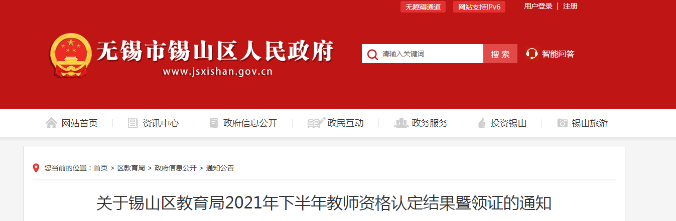 從無錫市錫山區(qū)人民政府獲悉,2021下半年江蘇無錫市錫山區(qū)教師資格認定結果暨領證通知已公布,請相關人員仔細閱讀,具體詳情如下: