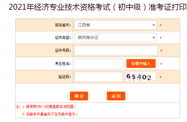 中國人事考試網(wǎng):2021年江西初級經(jīng)濟(jì)師準(zhǔn)考證打印入口已開通
