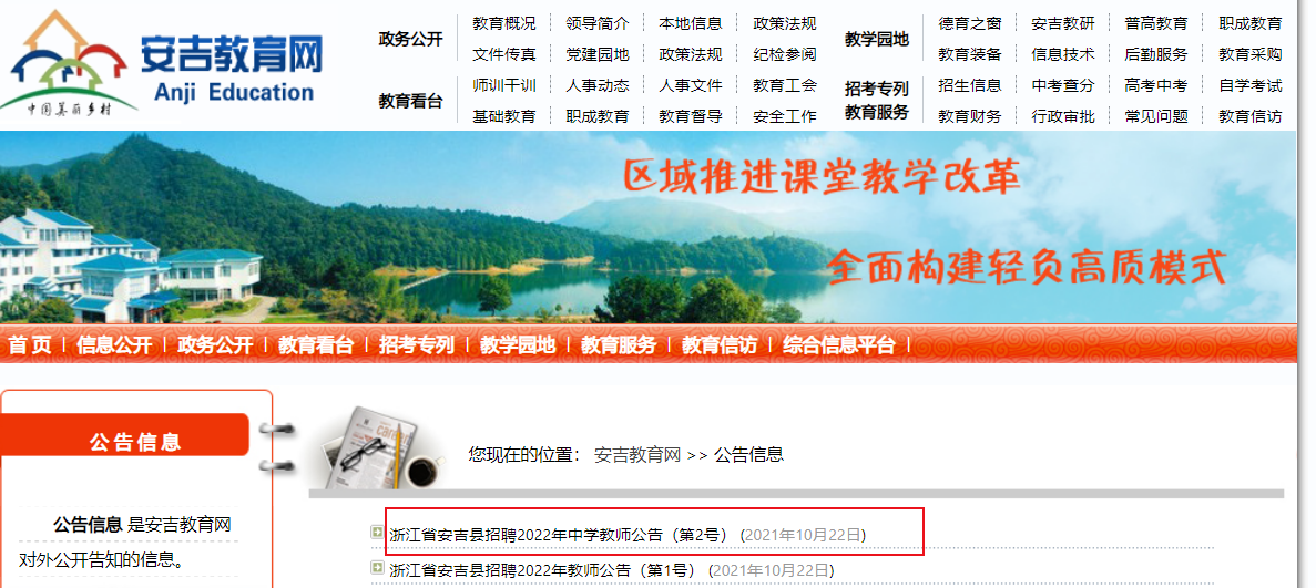 2022浙江湖州安吉縣招聘中學(xué)教師10名,網(wǎng)上報(bào)名時(shí)間截止到2022年4月15日16:00止?,F(xiàn)將招聘公告原文發(fā)布如下: