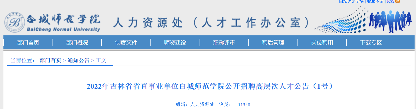 根據(jù)《事業(yè)單位人事管理?xiàng)l例》(國務(wù)院第652號(hào)令)、《關(guān)于進(jìn)一步做好2022年全省事業(yè)單位公開招聘工作的通知》(吉人社發(fā)〔2022〕4號(hào))及學(xué)校公開招聘相關(guān)政策精神,白城師范學(xué)院2022年擬面向社會(huì)公開招聘高層次人才,現(xiàn)將有關(guān)事宜公告如下: