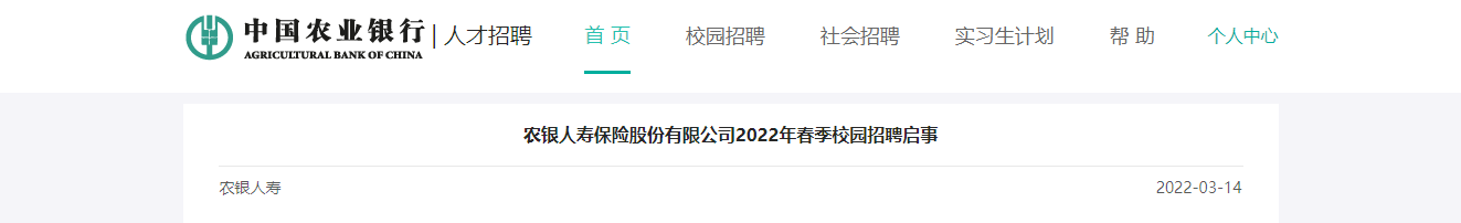 2022北京農(nóng)銀人壽保險(xiǎn)股份有限公司春季校園招聘若干人,報(bào)名時(shí)間:2022年4月5日截止,現(xiàn)將招聘公告原文發(fā)布如下: