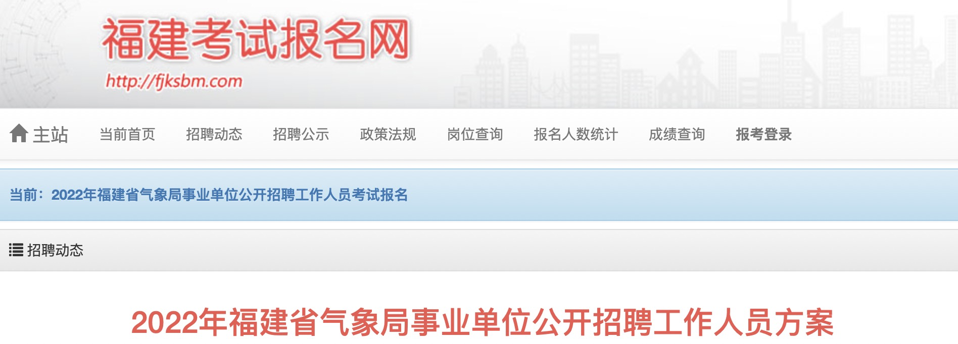 2022年福建省氣象局事業(yè)單位工作人員招聘公告【11人】已發(fā)布,網(wǎng)絡(luò)報名時間為:2022年3月16日8:00-3月23日11:00,現(xiàn)將招聘公告原文發(fā)布如下: