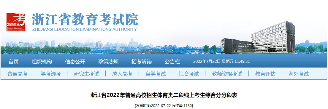 點(diǎn)擊查看:浙江省2022年普通高校招生體育類(lèi)二段線上考生綜合分分段表.xls