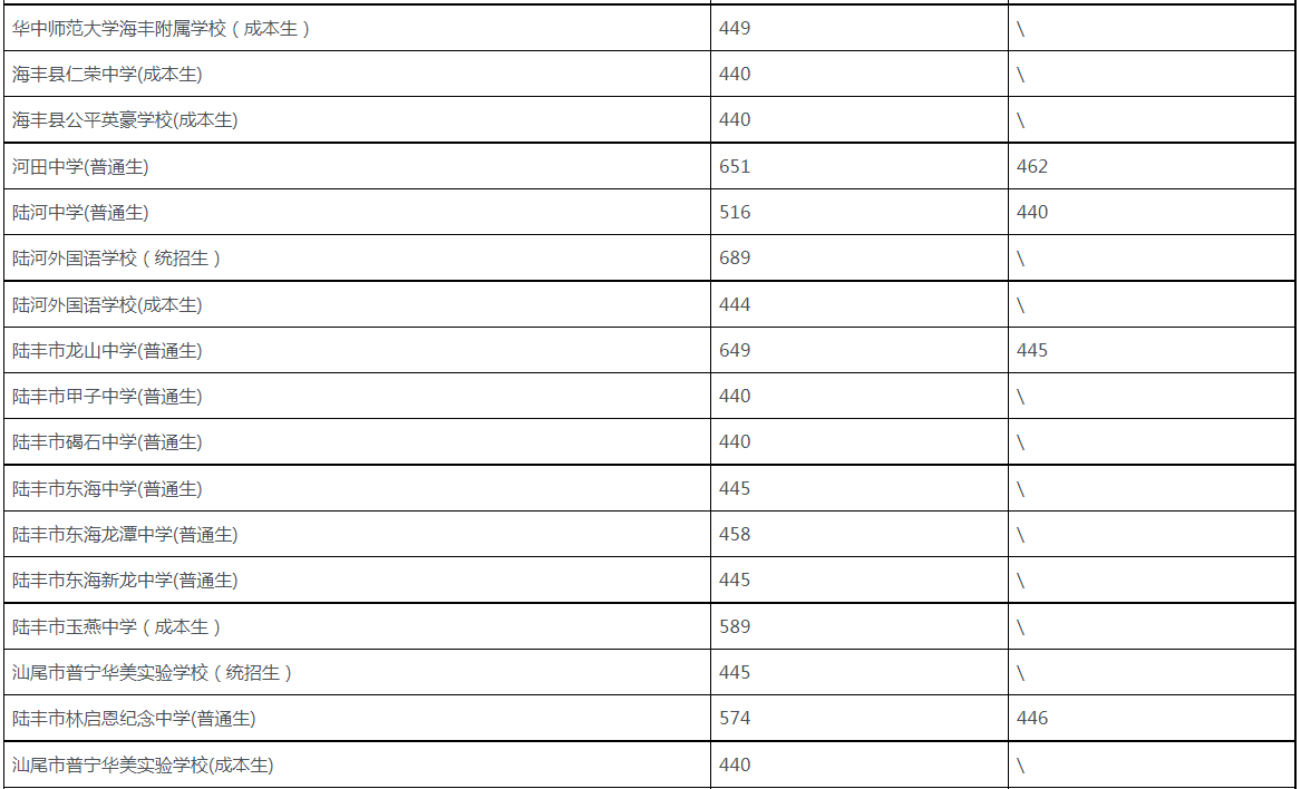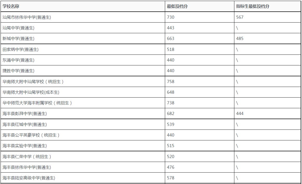 根據(jù)《汕尾市教育局 汕尾市人力資源和社會(huì)保障局關(guān)于下達(dá)2022-2023學(xué)年度高中階段學(xué)校招生計(jì)劃的通知》(汕教函﹝2022﹞171號(hào))、《關(guān)于印發(fā)<汕尾市2022年高中階段學(xué)校招生工作意見(jiàn)>的通知》等文件精神,2022年普通高中招生錄取投檔最低分?jǐn)?shù)線由市普通高中招生領(lǐng)導(dǎo)小組根據(jù)考生志愿、招生計(jì)劃、考試成績(jī)、綜合素質(zhì)評(píng)價(jià)等級(jí)等情況劃出?,F(xiàn)公布如下: