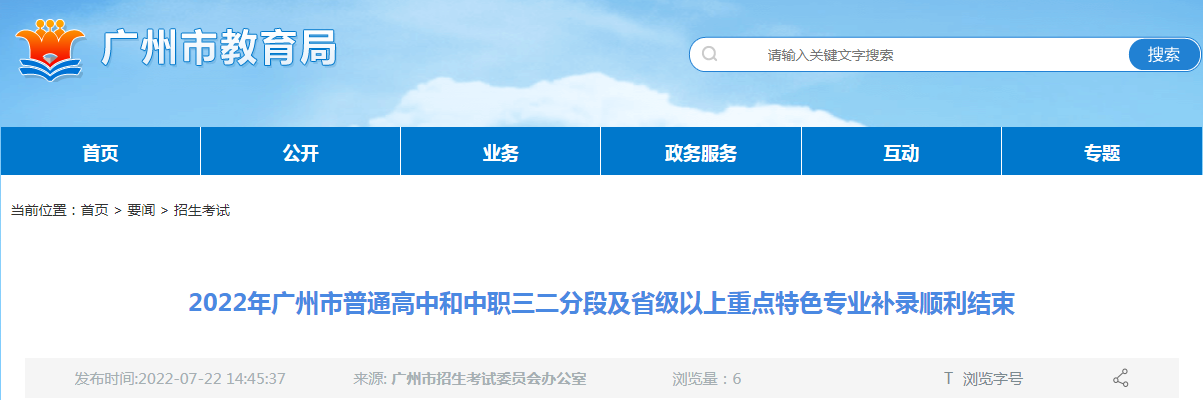 從廣州市教育局了解到,2022年廣東廣州普通高中和中職三二分段及省級以上重點(diǎn)特色專業(yè)補(bǔ)錄順利結(jié)束已發(fā)布,詳細(xì)內(nèi)容如下: