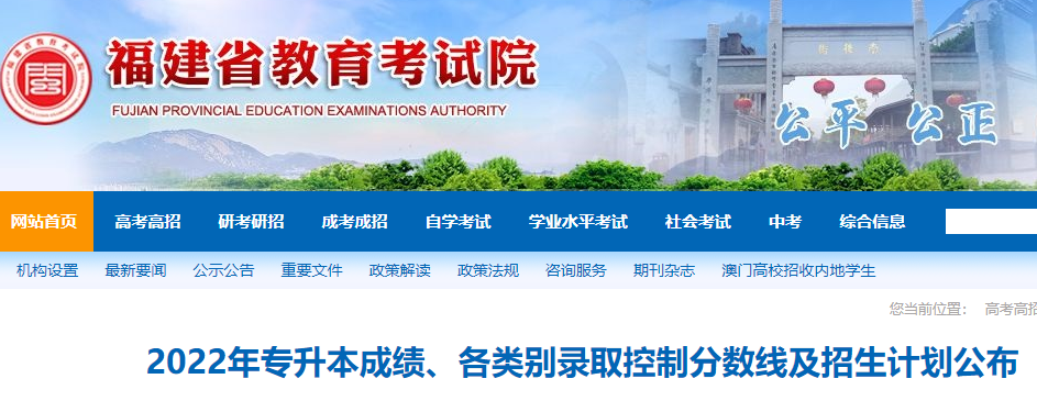 福建省2022年專升本成績已公布。請考生通過省教育考試院網(wǎng)站(www.eeafj.cn)“數(shù)字服務(wù)大廳----專升本招考”欄目中的“專升本報名及信息管理系統(tǒng)”進行查詢。