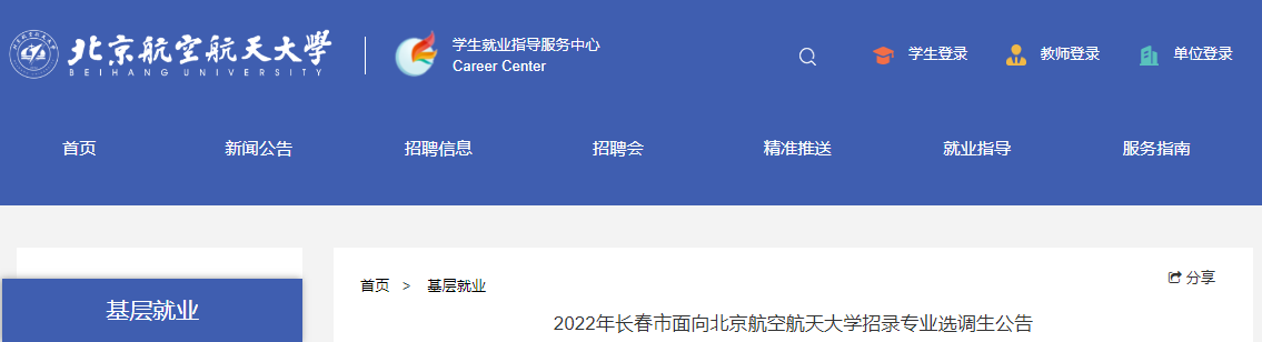 2.《2022年長(zhǎng)春市面向北京航空航天大學(xué)招錄專業(yè)選調(diào)生職位及條件一覽表》