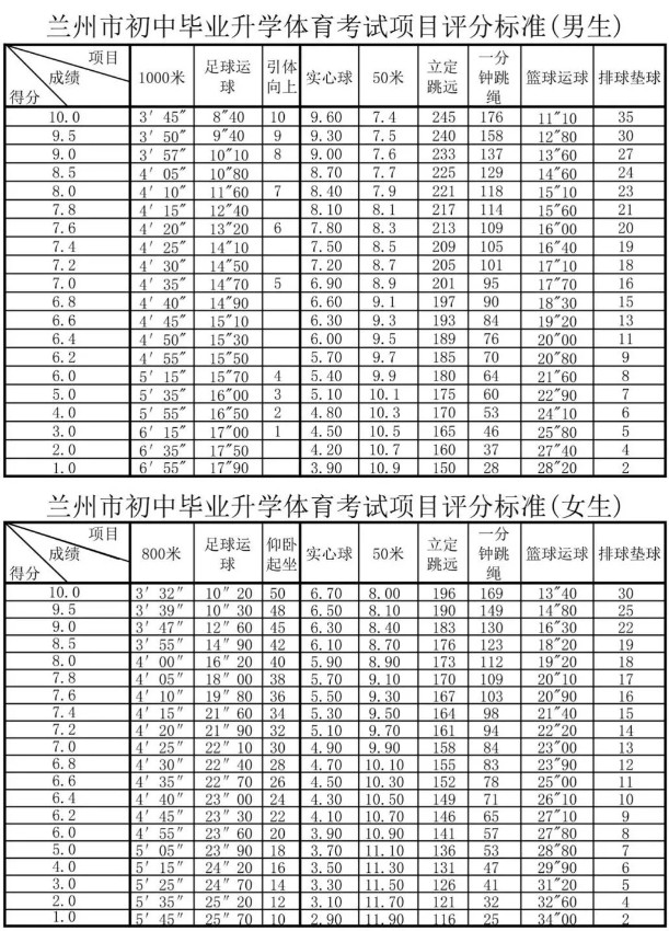 1.甘肅蘭州中考體育評(píng)分標(biāo)準(zhǔn)