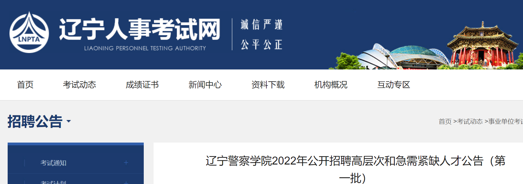 遼寧警察學院2022年公開招聘高層次和急需緊缺人才公告(第一批)已發(fā)布,報名時間:自公告發(fā)布之日起3個工作日后至2022年2月15日止?,F(xiàn)將招聘公告原文發(fā)布如下: