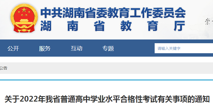 會考頻道從湖南省教育廳了解到,2022年湖南省普通高中學(xué)業(yè)水平合格性考試有關(guān)事項的通知已公布,具體如下: